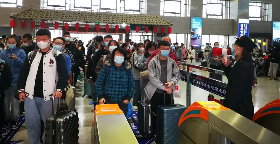 同时,平遥站休班人员,介休车务段机关人员、平遥站派出所民警共35人到站加岗,组织旅客到平遥古城站乘车离开。