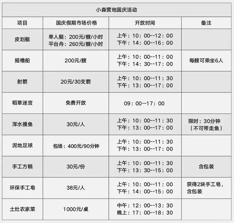 乐田农场各项国庆活动建议提前预约,费用以咨询回复为准。