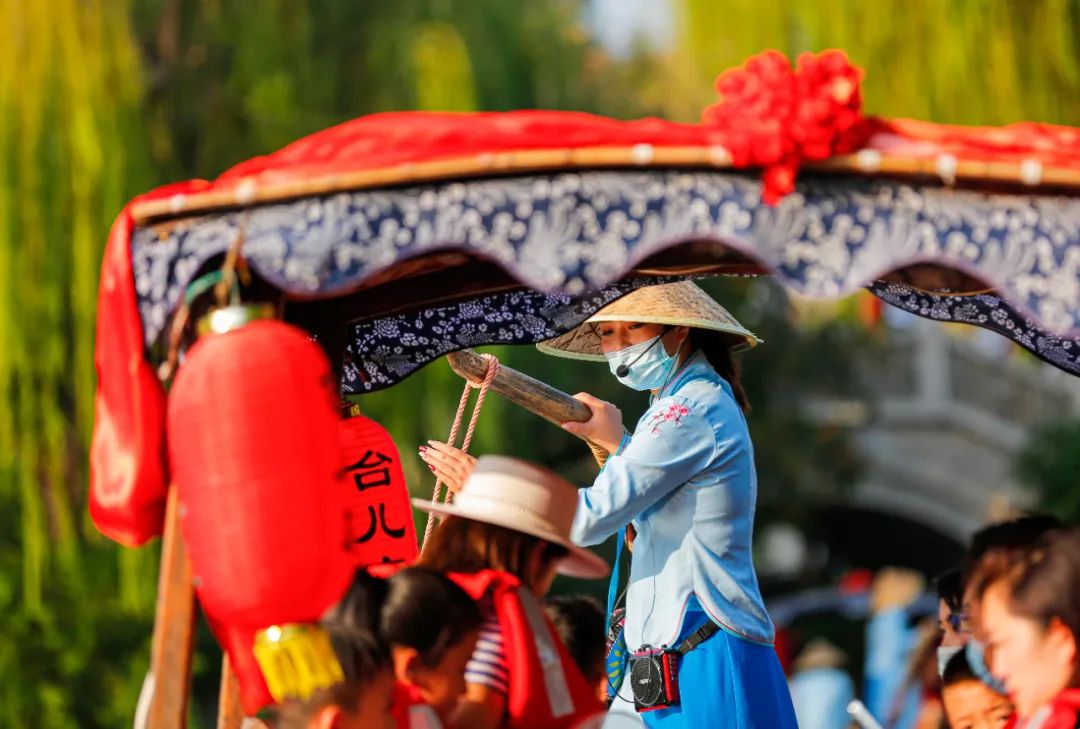 国庆假期,摇橹船是游客来台儿庄古城最受喜爱的“以船代步”体验项目。运河畔,微风拂面客流连,歌声悠扬入霄汉,能不惹人恋?在这座寻梦的古城,满眼缤纷绚丽,色彩斑斓,令人在迷惑沉醉中充满了美丽的梦幻。一船一橹一伊人,一水一城一梦乡,她们是台儿庄古城船妹子。