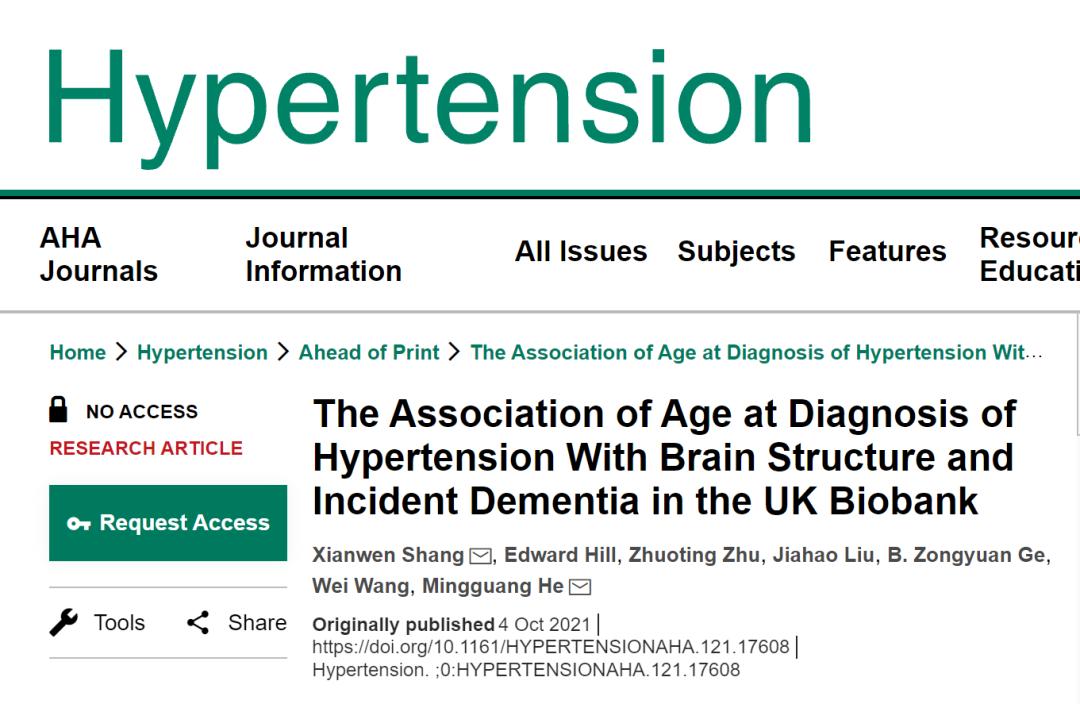 “高血压在中年人(45-64岁)中很常见,而早发性高血压正变得越来越普遍。虽然高血压、大脑健康和失智症之间的联系已经得到确认,但高血压发病的年龄如何影响这种联系尚不清楚。如果这一点得到证实, 将为建议更早干预以延缓高血压发病提供一些重要证据,这反过来可能有利于预防失智,”该研究的资深作者、中山大学中山眼科中心、澳大利亚墨尔本大学眼科流行病学教授、医学博士何明光说。