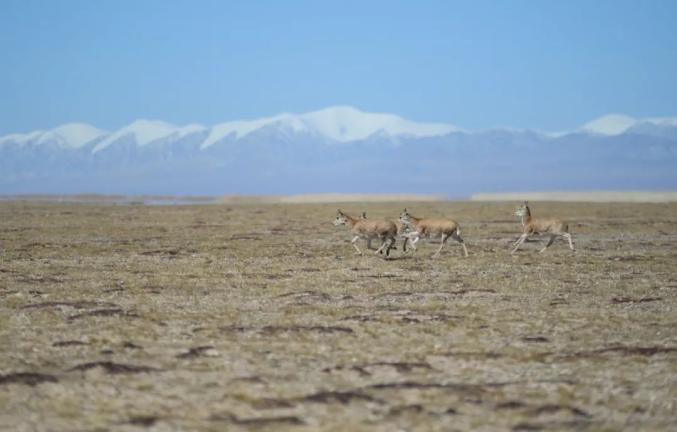 藏羚羊在可可西里地区奔跑 新华社记者 严赋憬 摄