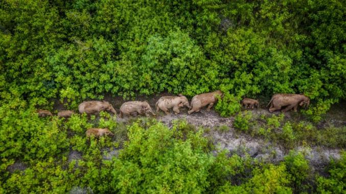 8月9日,亚洲象在玉溪市元江哈尼族彝族傣族自治县境内 新华社记者 胡超 摄