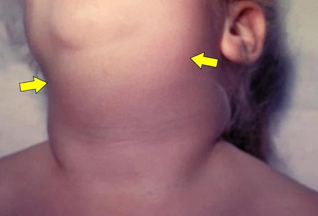大部分感染患者没有症状,也有部分患儿在感染几天后出现发热、肌痛、疲乏、厌食和头痛,随后出现腮腺炎症导致腮腺肿大。流行性腮腺炎很少出现严重的并发症,如病毒性脑膜炎、脑炎、胰腺炎等。
