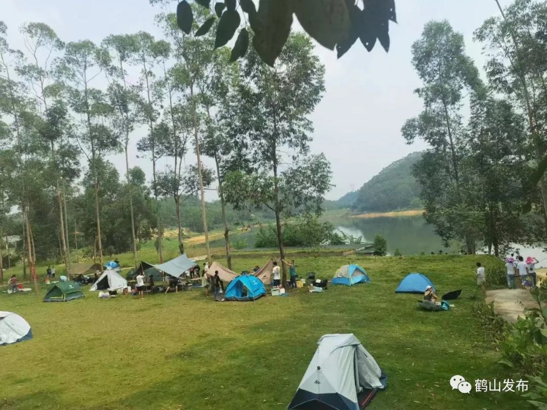 在水库旁的露营基地上,不少游客搭好了帐篷。