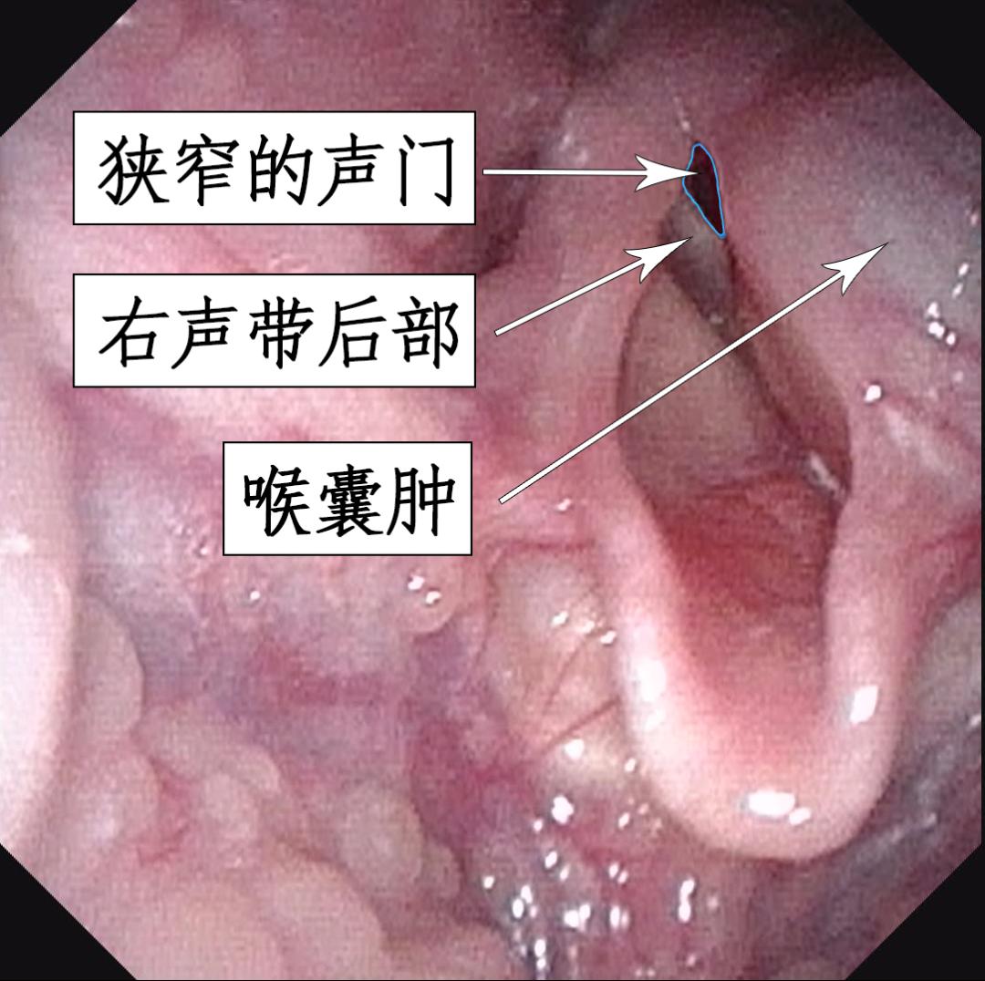 睿睿今年1岁多,家住临沂市莒南县。来山东省耳鼻喉医院就诊的三个月前,睿睿呼吸时出现了喉喘鸣音(呼吸时发出类似于吹哨子的声音)。起初家人并没有在意,却不曾想后来病情逐渐加重,最后发展到连走路和睡觉都出现呼吸困难、说话基本不能发出正常声音的程度。这时候,家长才意识到病情的严重性,父母带着睿睿先后去了青岛和临沂的两家大医院,两家医院均给出“上级专科医院就诊”的建议。经朋友介绍,8月2日睿睿来到了山东省耳鼻喉医院。刚入院时,睿睿已经无法发声,安静状态时就有喘息憋气症状,喘鸣声较大;活动后憋气加重,平躺时要辗转多个姿势,才能保证呼吸略微顺畅。入院第一天晚上,睿睿的喉鸣音响彻整个小儿耳鼻喉科病房。经检查,睿睿左侧声门上区有一个体积较大的类圆形肿物,肿物的表面粘膜光滑,向内突向喉腔,遮挡绝大部分声门,导致声门狭窄,向外突向左侧梨状窝。结合电子喉镜检查,徐伟院长首先考虑“喉囊肿”的诊断,这也正是导致睿睿呼吸困难和无法发声的“罪魁祸首”。