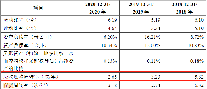 除此之外,尚太科技自身应收账款和存货余额增高的风险也需要注意。招股书显示,2018年-2020年,尚太科技应收账款账面价值分别为1.26亿元、2.12亿元、3.03亿元,占当期总资产的比例分别为18.77%、22.16%、20.12%,占总资产的比例较高。同期尚太科技的应收账款周转率分别为5.32次、3.23次、2.65次,也呈逐年下降趋势。