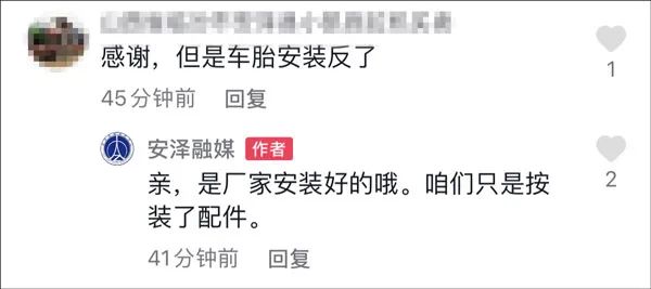 看到有网友担心车胎安装方向不对,@安泽融媒 解释称,运来的收割机是厂家安装好的,当地工作人员收到后只是安装了配件。