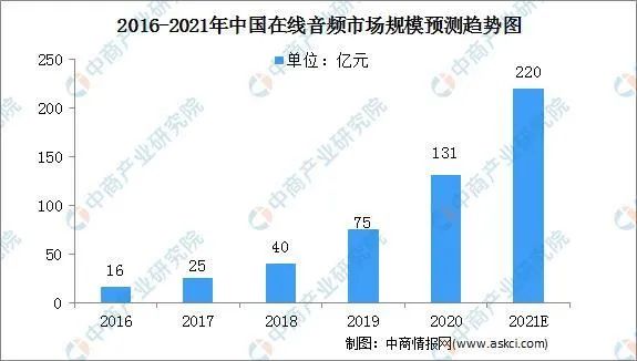 有数据指出,中国在线音频市场的收入从2016年的16亿元增长至2020年的131亿元,复合年增长率为69.4%,2021年将达到220亿元。想象空间是存在,但整体盘子并不大。