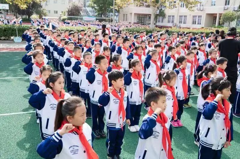 青岛崇德小学火红的队旗高高飘扬,指引我们前进的方向,鲜红的红领巾系满理想,载着我们扬帆远航!为深入学习宣传习近平总书记“七一”重要讲话精神和对少年儿童的希望与要求,贯彻落实《中共中央关于全面加强新时代少先队工作的意见》精神,教育引导广大少先队员听党话、跟党走,10月13日上午,青岛崇德小学“红领巾心向党 争做新时代好队员”建队日主题教育活动暨新队员入队仪式隆重举行。