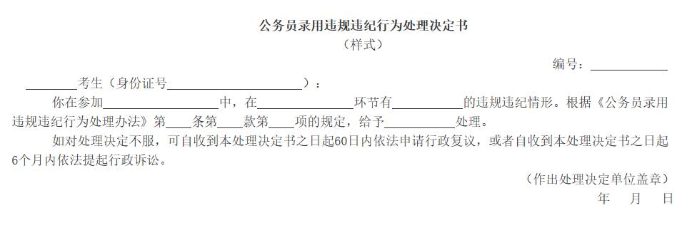 附件:公务员录用违规违纪行为处理决定书(样式)