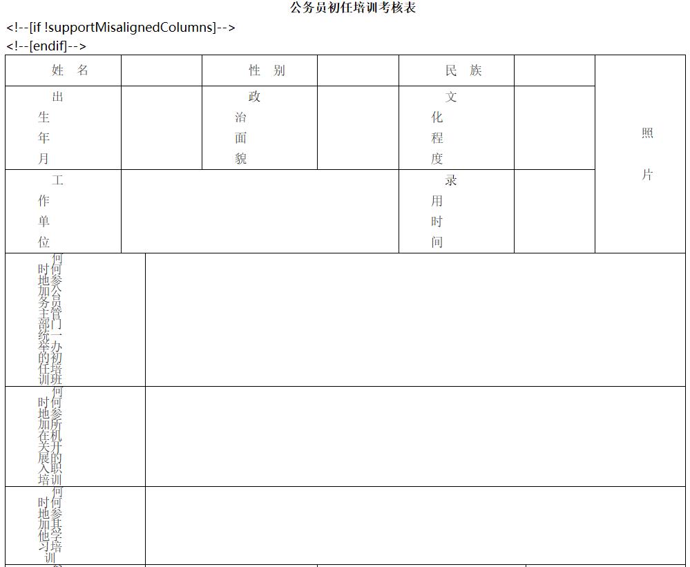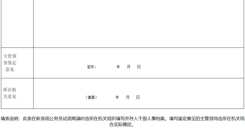 完善初任培训登记制度,新录用公务员试用期满时由所在机关组织填写《公务员初任培训考核表》(见附件)并存入干部人事档案。