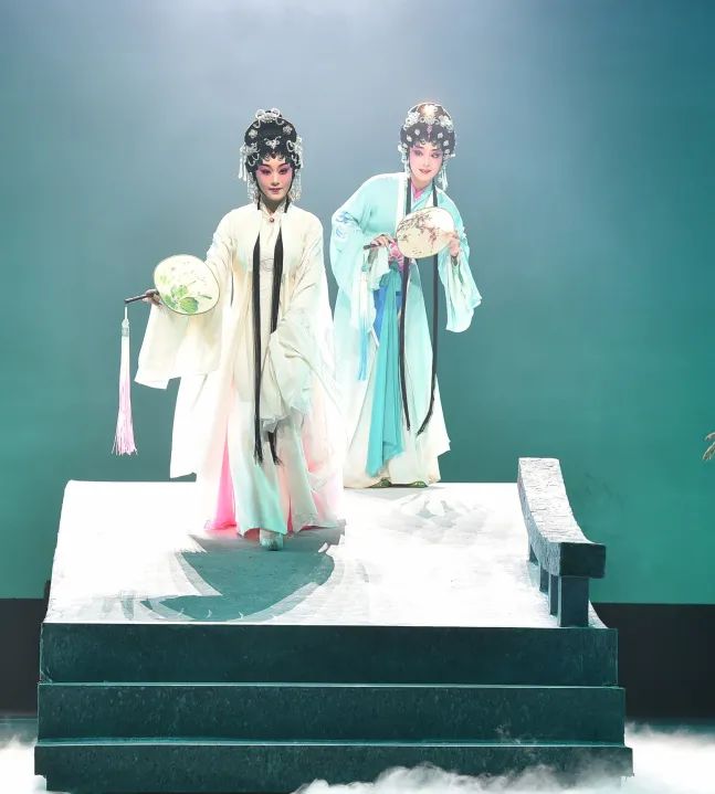 舞台上,曾小敏饰演白素贞唱做俱佳、文武兼备,跨越了花旦、武旦和青衣,围绕一个“情”字,动作与情感表达尤其细腻。在“钟情”中与许仙相遇一见倾心,二人伞下深情对视给观众一种怦然心动的浪漫感觉。