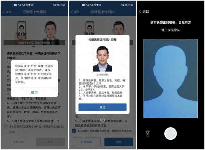 ▲手机拍摄证件照或从手机相册选择证件照提交