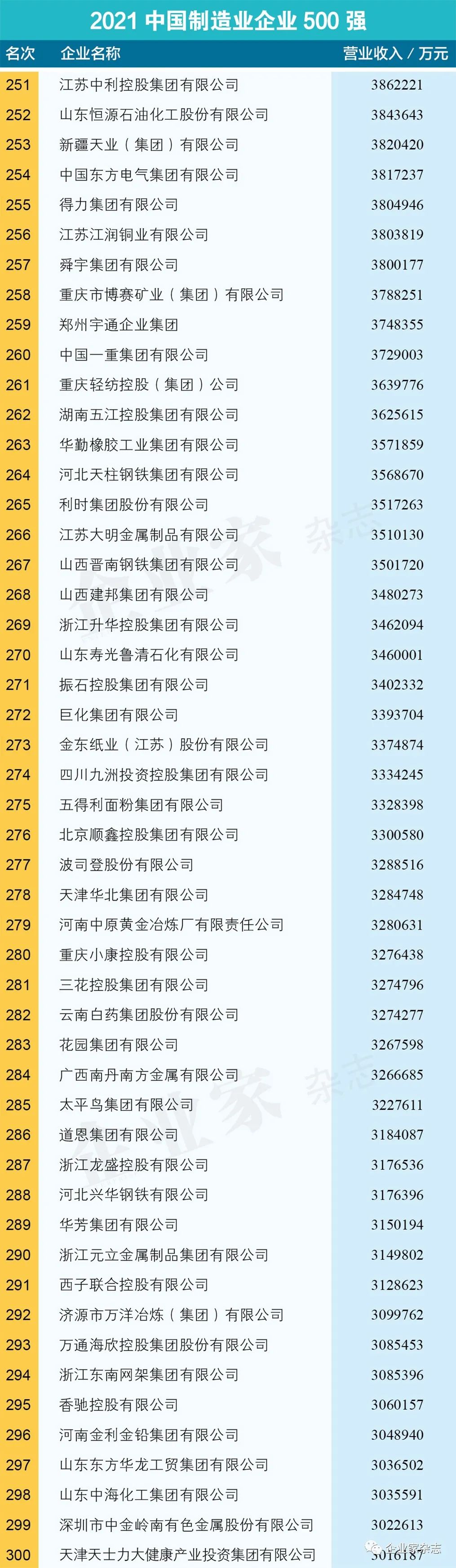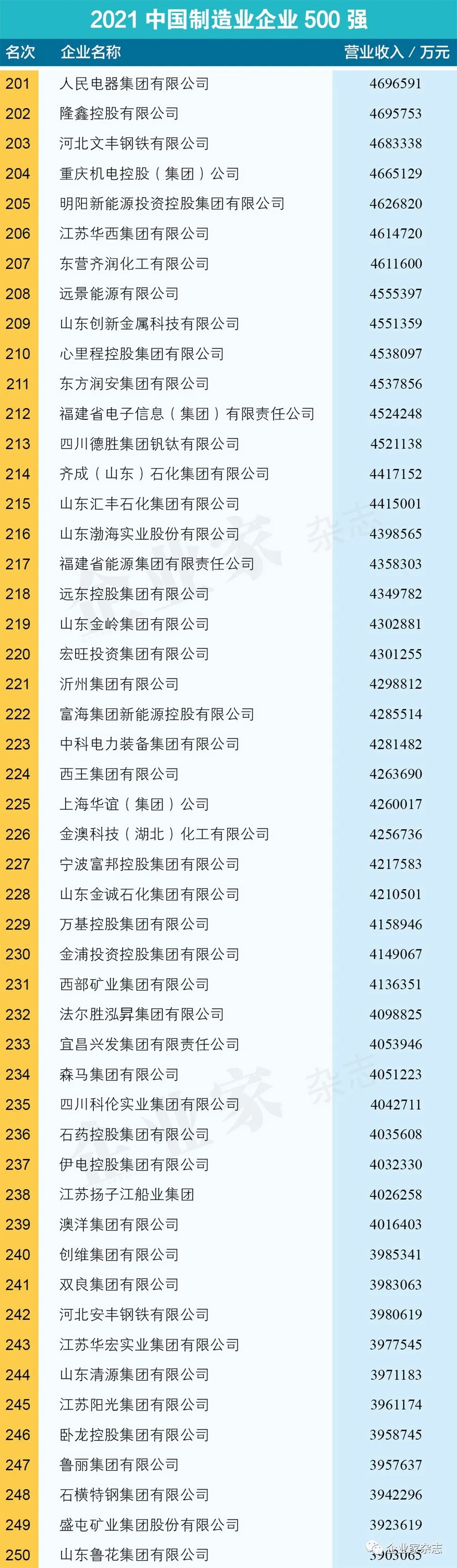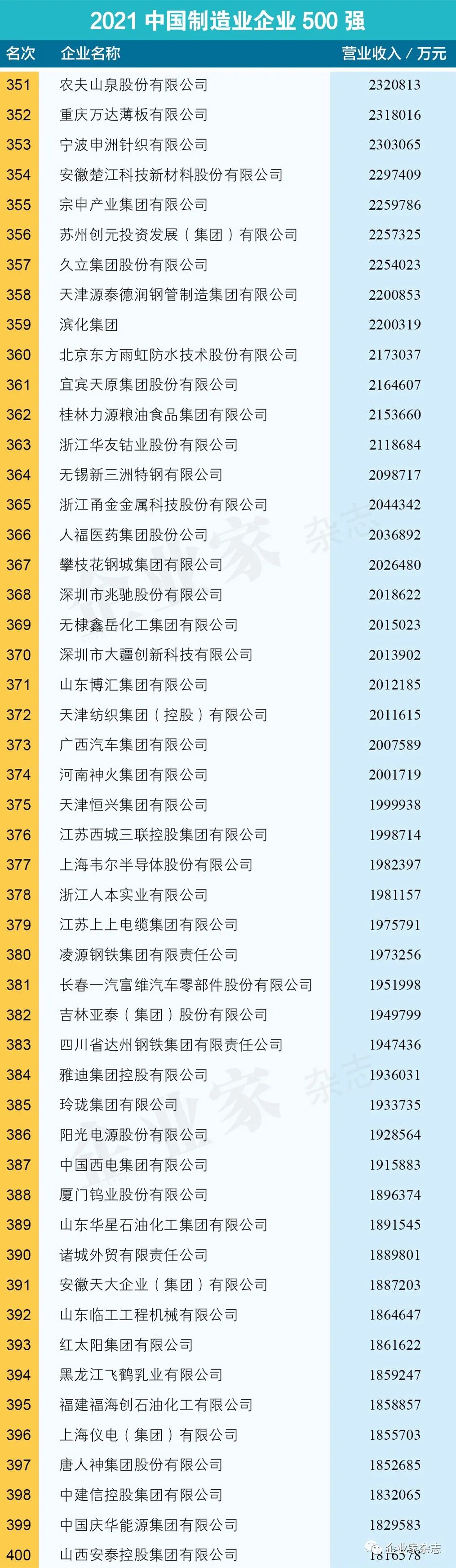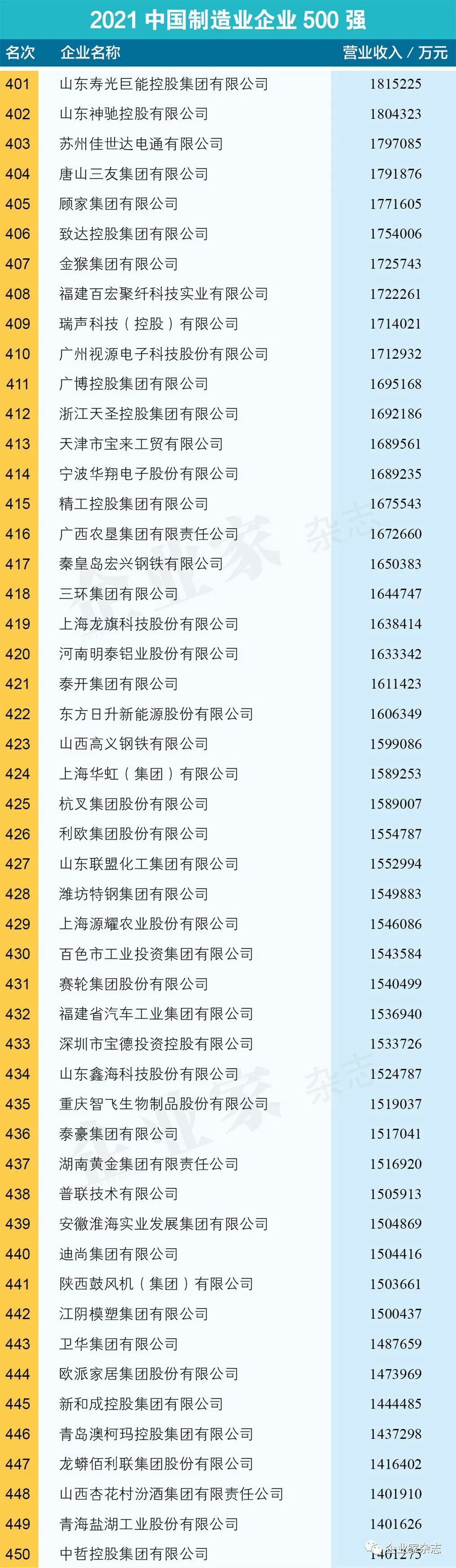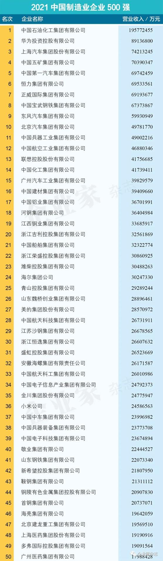 原标题:《2021中国制造业企业500强名单》