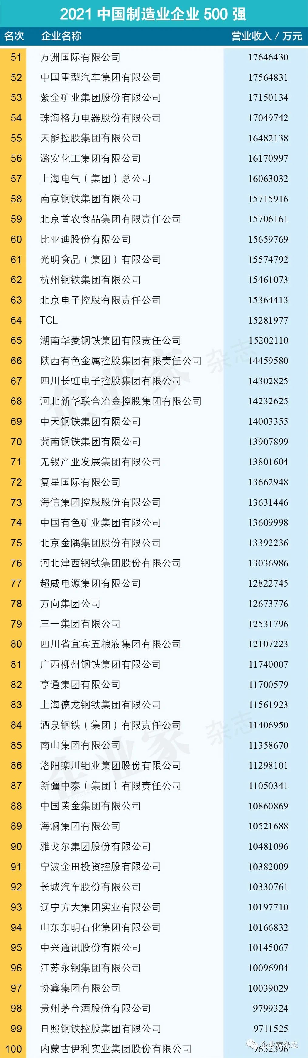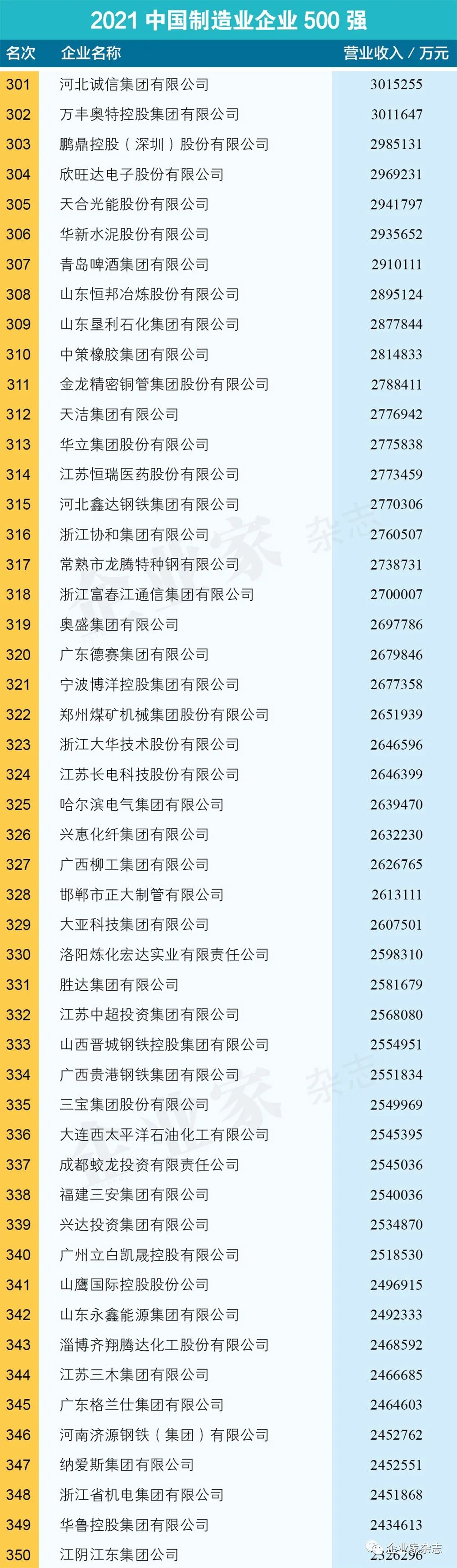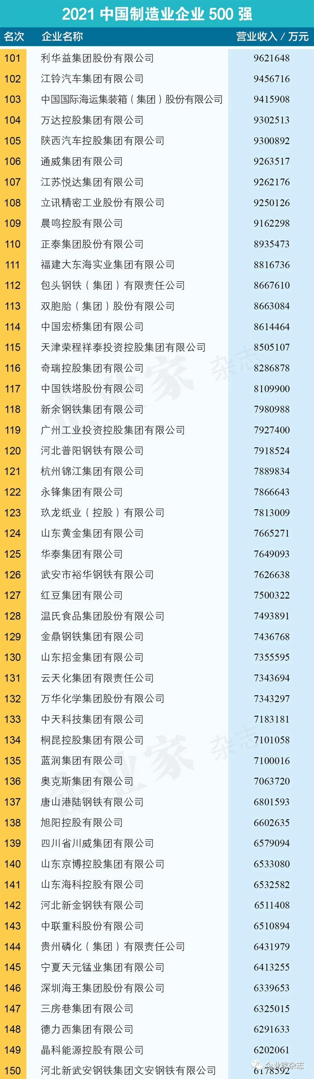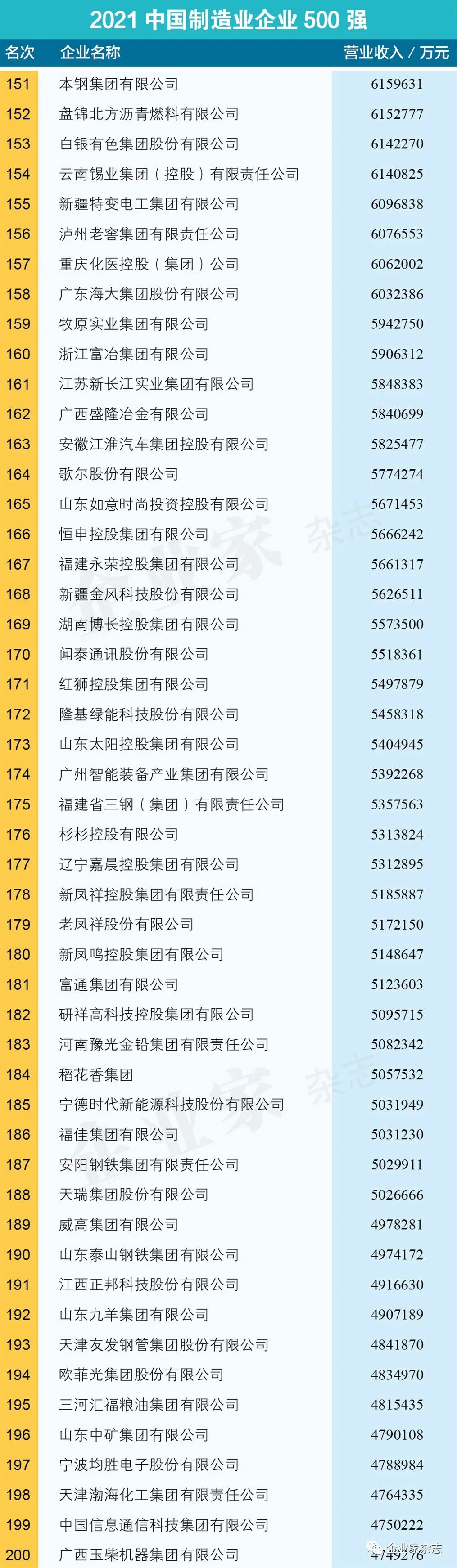 原标题:《2021中国制造业企业500强名单》