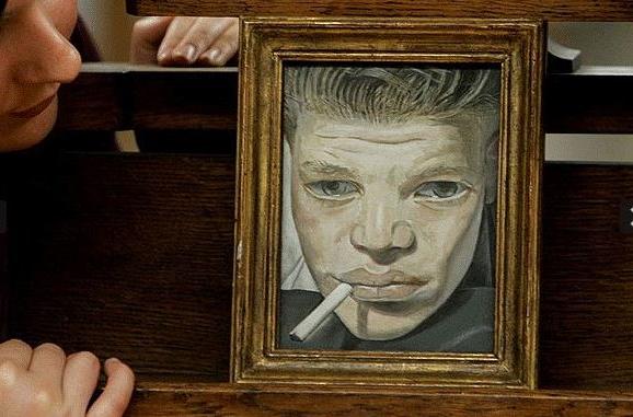 6、弗洛依德不喜欢看起来太像艺术的艺术作品。参加过弗洛伊德肖像展的艺术评论家马丁•盖弗(Martin Gayford)认为“评论家抱怨弗洛伊德画作中的笨拙其实是他有意为之”。例如,泰特英国(Tate Britain))所藏的《抽烟的男孩》(Boy Smoking,1950)就不是人物写实。作品中的男孩眼睛呆滞空洞,脸如同一个可以被撕裂的平面。但是这种平坦告知观者一些有关男孩所处环境的信息:在他年轻的肌肤上似乎熨刻了生活的艰辛。弗洛伊德遇到这个名叫查尔斯•拉姆利(Charles Lumley)的男孩时,他正和他的兄弟“试图闯入弗洛依德的工作室”。弗洛依德当时住在帕丁顿一个工人阶级社区,他还经常帮助犯罪的邻居。