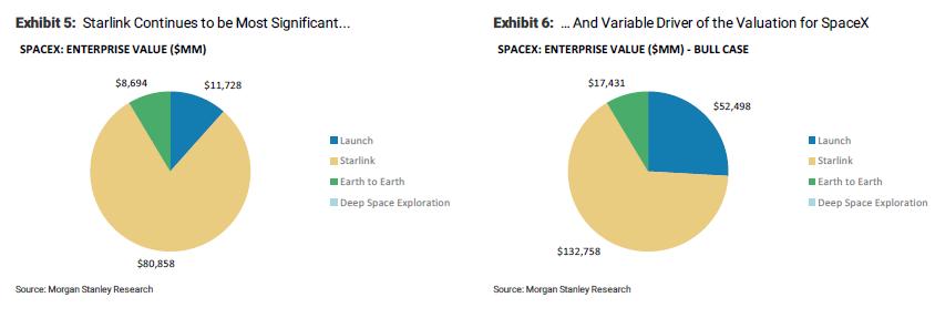 前文中提到,摩根士丹利的分析团队认为,Starlink业务是SpaceX目前估值占比中最重要的一环。