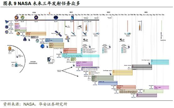 据华安证券整理,根据SpaceX掌握的发射合同,在2022年和2023年,SpaceX需要执行发的外部合同数量多达40个(不包含星链卫星发射任务)。