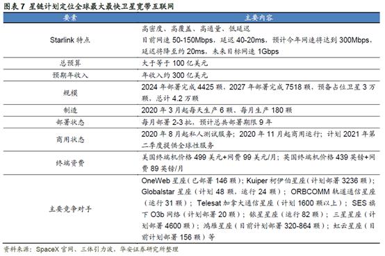 据华安证券整理,星链计划与美国政府、军方等客户合作,提供多种专网宽带通信。