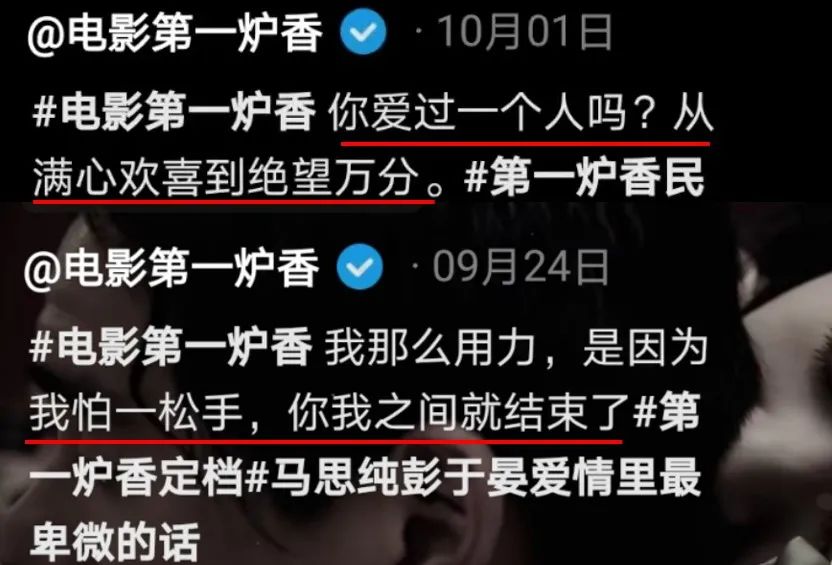 这种青春疼痛文学式的营销,居然出现在了《第一炉香》这样的电影里。
