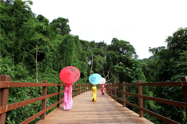 光是景洪市周边就有不少景点等你探索,到热带花卉园看稀奇植被,观看热带花卉的争奇斗艳现场花展;在西双版纳原始森林公园观看孔雀放飞的壮观景象,探秘神奇雨林世界,属实会令人惊讶难忘。看尽大自然的鬼斧神工,也要欣赏人文建筑的巧夺天工,想在不出国的情况下感受浓厚的异域风情,曾经傣王的御花园、西双版纳古老的曼听公园最合适不过。这个为数不多的市区景点是一个天然的村寨式公园,里面集合着傣王室文化、佛教文化、傣民俗文化三大特色,走在“御花园”中技能感受到大自然的馈赠,还能收获到不同文化的熏陶。