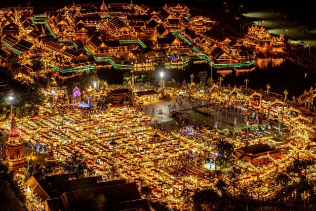等到夜幕降临,漫步在澜沧江边,穿梭在告庄西双景的夜市中,看看这座城市璀璨夺目的夜景,坐在澜沧江边喝上一袋特色奶茶,吃上一盘特色小吃,即使是一个人来到这里也会被这火热的气氛所感染,被眼前金碧辉煌的大金塔和澜沧江上的点点星光所治愈。