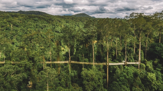 打卡望天树景区是必不可少的,走进热带雨林深处,近距离目睹雨林中板根、绞杀、寄生附生、滴水叶尖、老茎怀春的五大奇观。胆大的游客可以上到被称为“世界第一高,中国第一条”的树冠走廊,走在离地面数十米的走廊上,以最佳视觉体验一把雨林高空探索的惊险刺激。