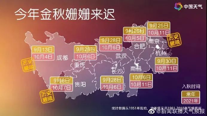 而今年多地入秋时间为10月上中旬
