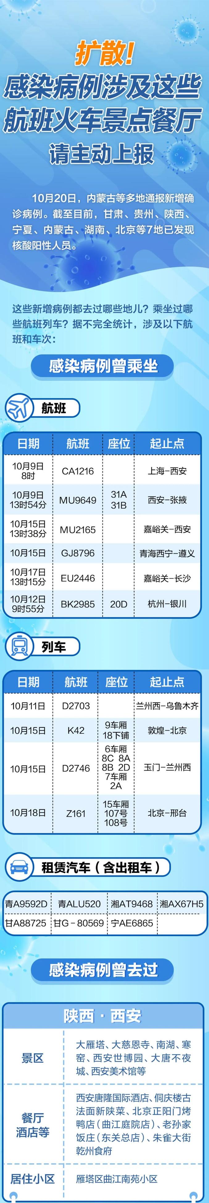 感染病例涉及这些航班火车景点餐厅