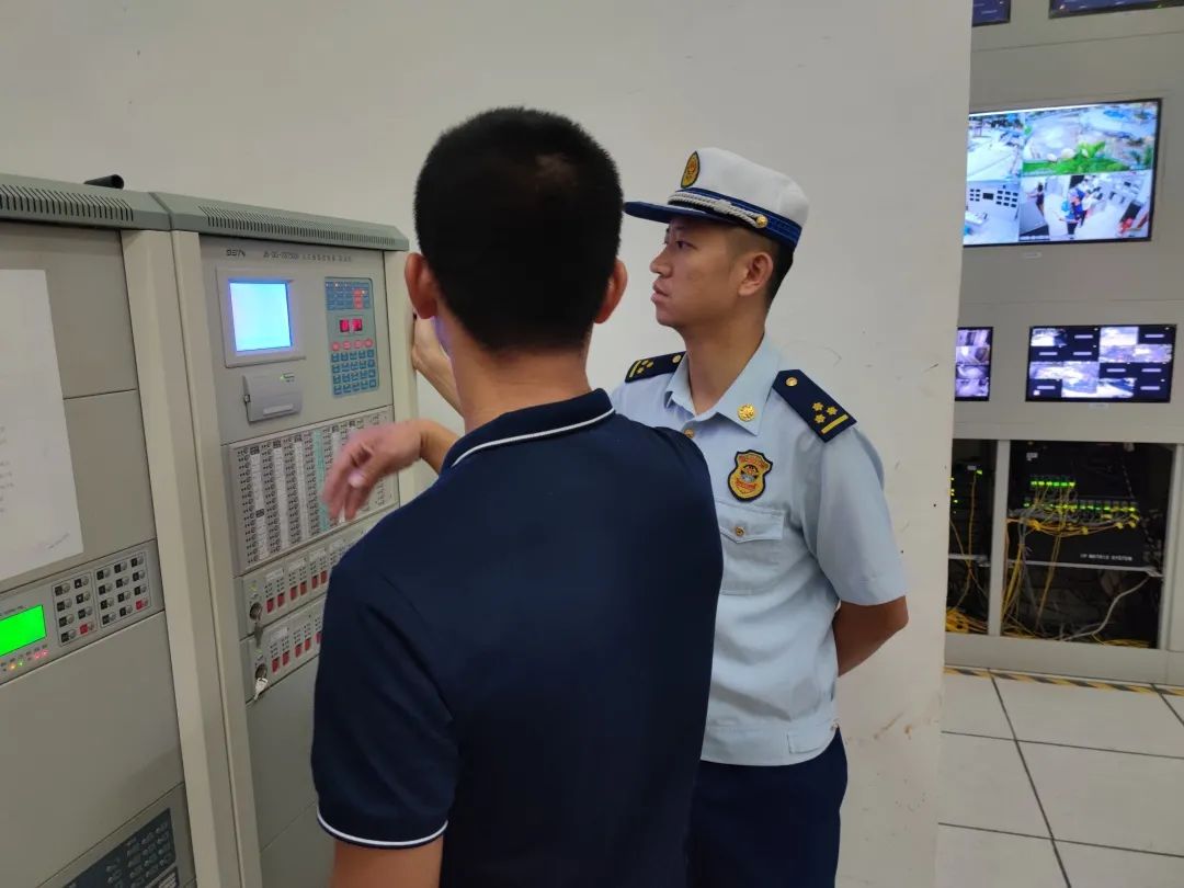 消防人员检查喷淋泵