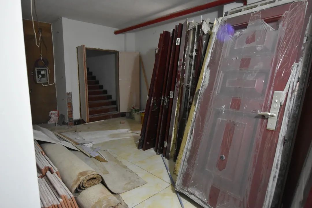 3、北侧两个楼梯疏散到一楼时被堵塞,不能直通室外;