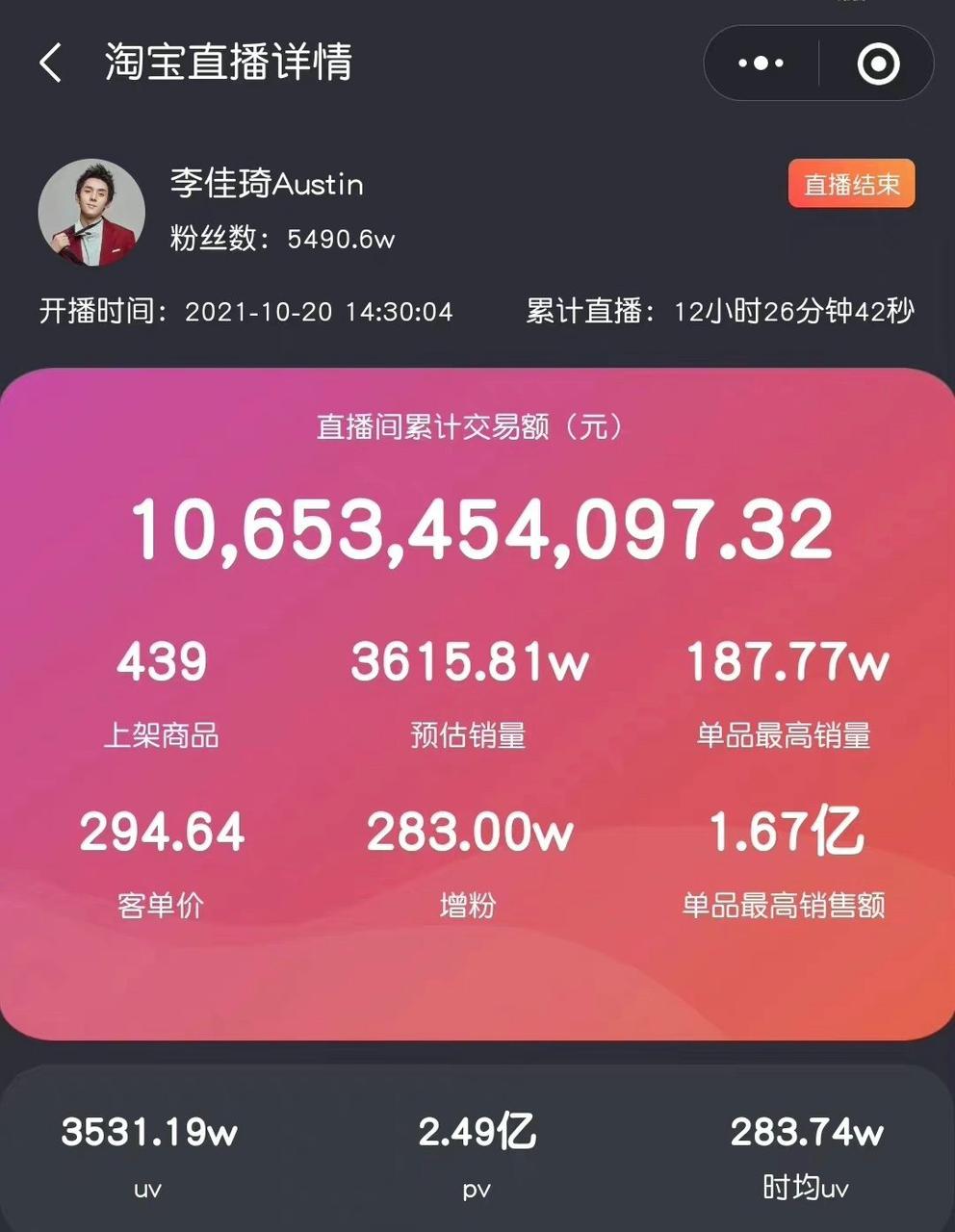 李佳琦薇娅的190亿战绩有点扑朔迷离