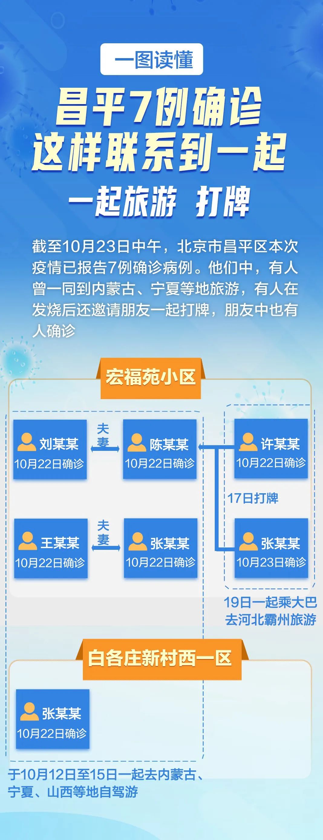 【北京昌平俩病例发病后仍邀朋友打牌】北京昨天通报,本起疫情涉及自驾游旅行团共5人,目前已全部确诊。旅行团中的1名成员于10月15日即出现发热症状,体温最高达39℃,自行用药后症状未缓解,其妻子于10月19日也出现发热至39℃,二人均未到正规医疗机构发热门诊就医。此外,二人发病后两次邀请朋友到家中打牌,目前共同打牌的朋友中已有2人确诊。因为违规向确诊病例销售退热药品,北京两家药店一家诊所被处理。(详情)