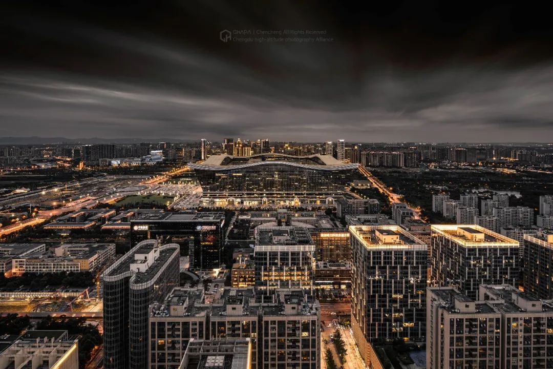 IFS爬了那么多楼,陈成有喜欢的TOP3,他最爱的是天府国际机场那组,“前后拍摄了一年多,通航后我一看ETC记录,团队来回跑了80多次。”后来他们干脆驻扎在附近,天气好的时候五六点就去等日出,由此拍摄到了各种天气各种时间段的天府机场。除此之外,太古里和金融城也是陈成喜欢的拍摄对象。