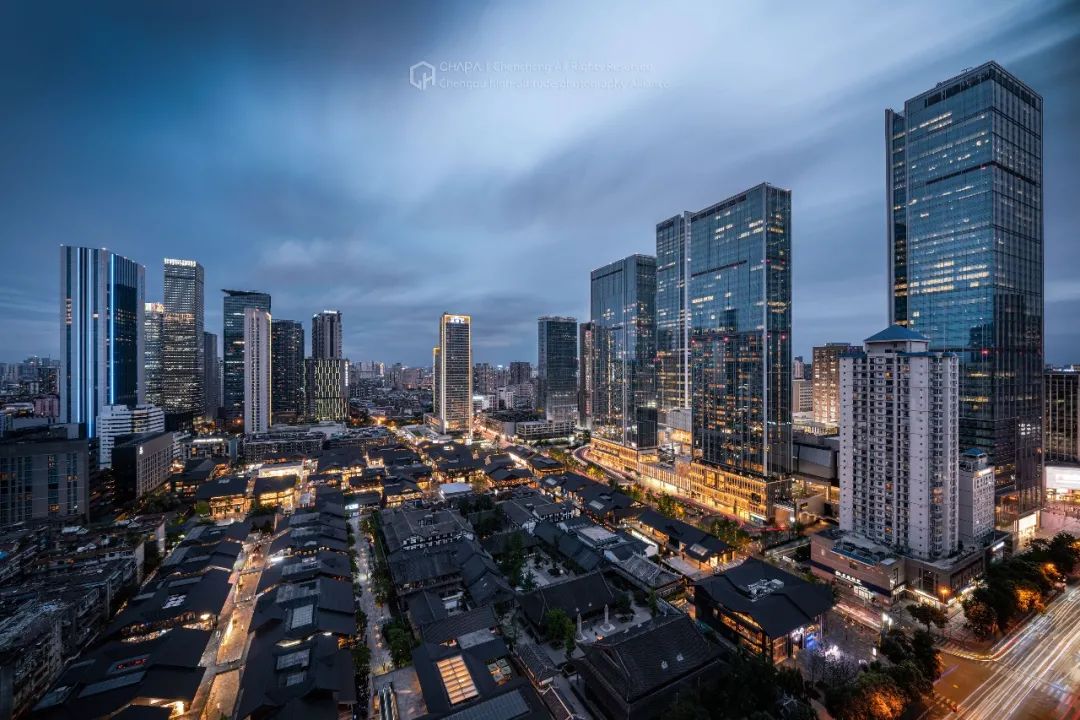 金融城除了在成都爬楼,陈成去过世界各地几十个城市爬楼,“回过头来看成都的建筑特色是古典和现代的融合,体现了包容性。你看,超多这种矮房子和高房子和谐共生的场景。”