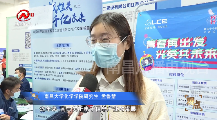 南昌大学化学学院研究生 孟鲁慧:近年来,南昌关于电子信息产业的发展让我看到了就业的前景和竞争力。这也是让我决定留在南昌的一个原因,像我们省外的可以留在南昌一些福利政策还是蛮好的。