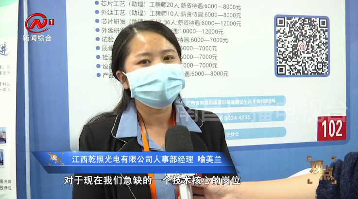 江西乾照光电有限公司人事部经理 喻美兰:对于现在我们急缺的一个技术核心的岗位,刚好南昌出台了“人才十条”政策给我们提供了一个很大的帮助。