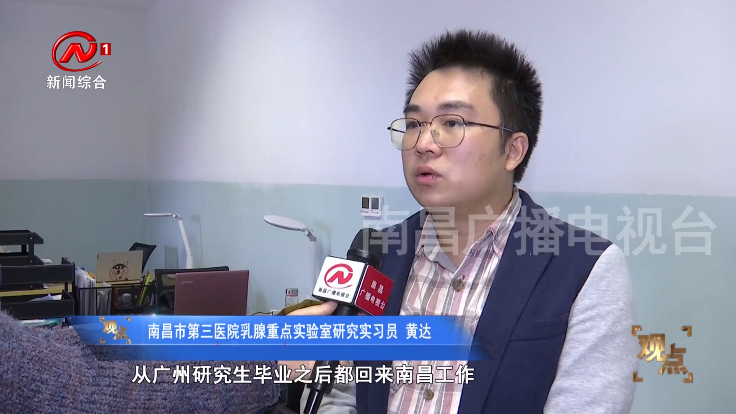 南昌市第三医院乳腺重点实验室研究实习员 黄达:我也是感受到了南昌市对人才建设以及对科研的重视性, 坚定了我们年轻人回家乡工作的信心。所以,我就和我爱人一起从广州研究生毕业以后都回来南昌工作,我爱人也是把自己的户口迁来南昌。现在这个平台也可以更好地衔接我对口的专业。
