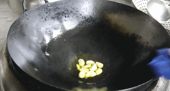 1.菜籽油(也可用其他油代替)油温烧至六成热,爆香姜蒜。