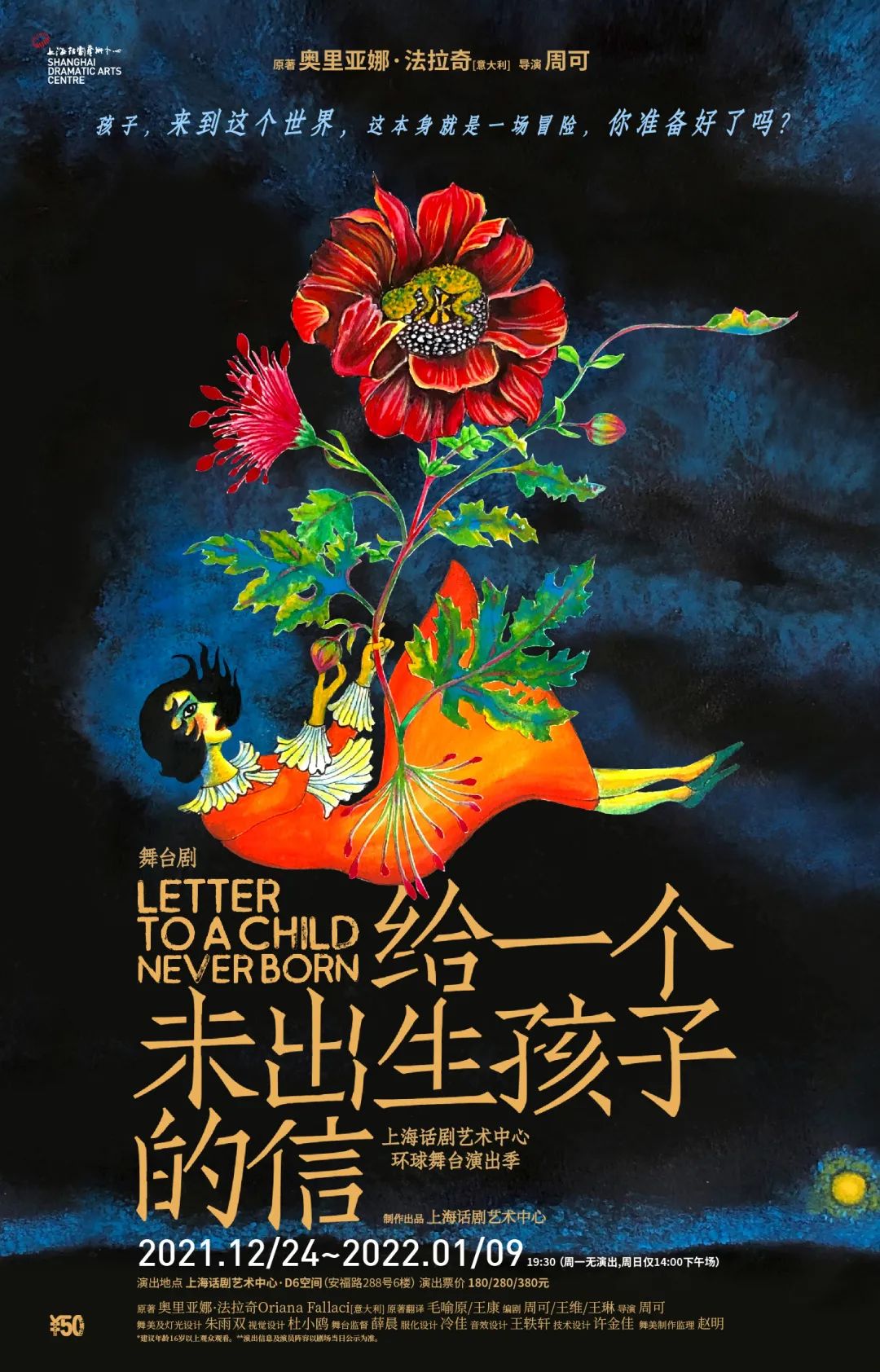 2021年12月24日至2022年1月9日,由导演周可执导、改编自法拉奇同名小说的舞台剧《给一个未出生孩子的信》将首演于上海话剧艺术中心·D6空间,为你道尽一个女人最私密的痛楚和甜蜜、困惑与勇气、自私与伟大。跨年档,让我们坐在安福路288号的小剧场里,来一次心与心的交流。上海话剧艺术中心·环球舞台演出季