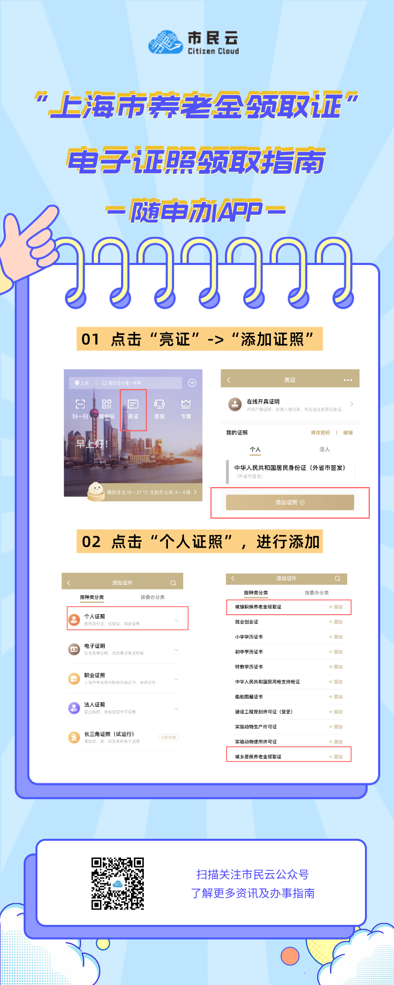 “上海市养老金领取证”电子证照,领取指南可戳图了解↓