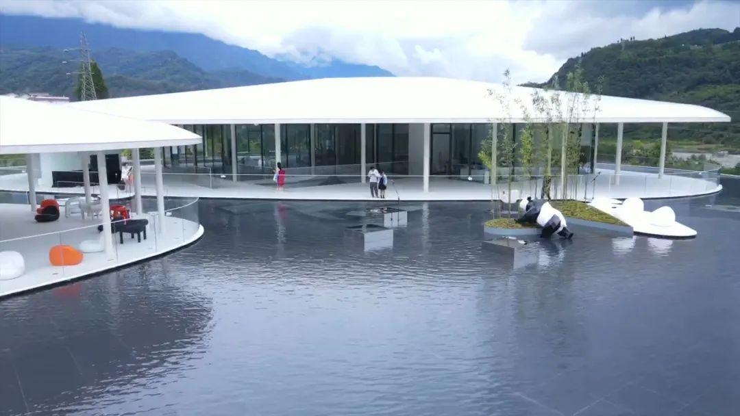 建筑设计还将龙门山地质成因的冰川漂砾以及熊猫栖居的竹林