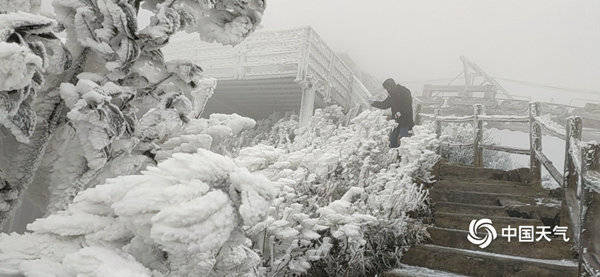 ↑2021年1月8日,广东清远连山金子山景区出现雾凇景观。(图/金子山工作人员)>> 1月6日-8日寒潮过程中,华北、黄淮等地气温创下不少纪录,北京、河北、山东、山西、陕西等省市共计60个气象观测站的最低气温突破或达到建站以来历史极值。北京最低气温跌至-19.6℃,创1966年2月23日之后最冷气温纪录;天津西青-19.9℃,打破当地1月最冷纪录,观测史第二冷;济南-18.3℃,创1月上旬最冷纪录,也是1953年1月17日之后出现的最低温度。