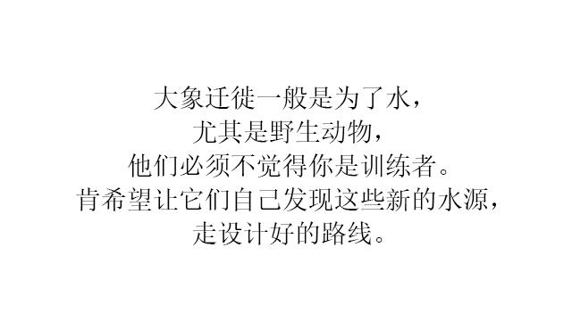 第一年,象群找不到新水源。第二年,他们马上就发现了。20来年象群的数量令人发颤地减少,但项目成功后,大象的数量增加了。这让肯非常自豪,他想今年也许可以把屏障放远一点,只让他们看到。长远计划是,10年后撤除屏障和水源,大象是不是还能走新的路线。这也是最难的。