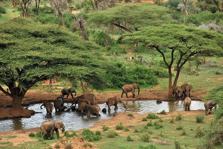 在赞比亚,人工水坑有助于说服大象走一条不太危险的迁移路线。©christophe_cerisier / Getty Images
