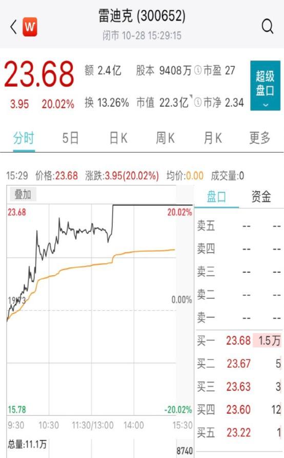 雷迪克刚刚20%涨停