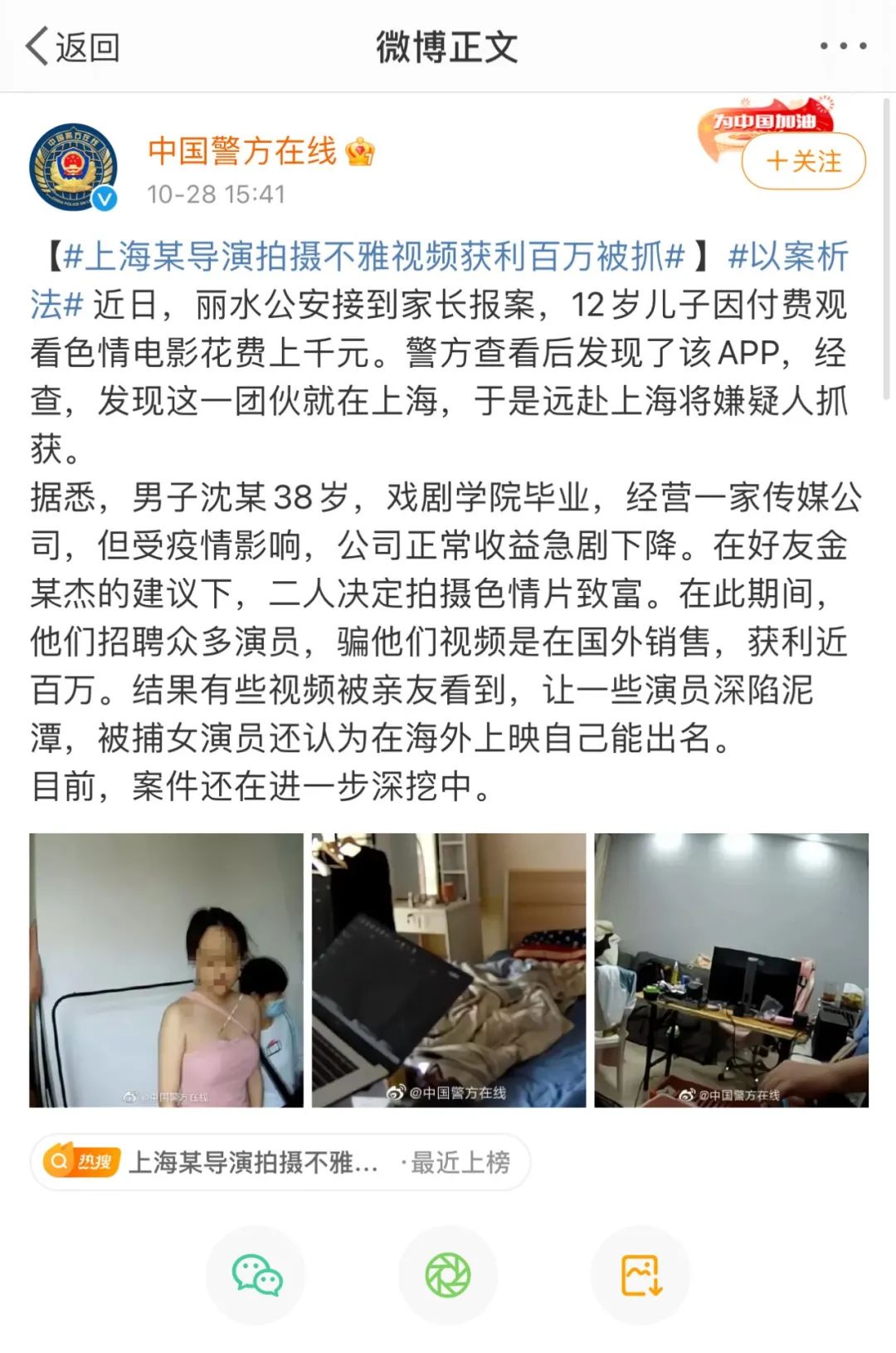 原标题:《导演拍不雅视频被抓!曾出演《爱情公寓》》