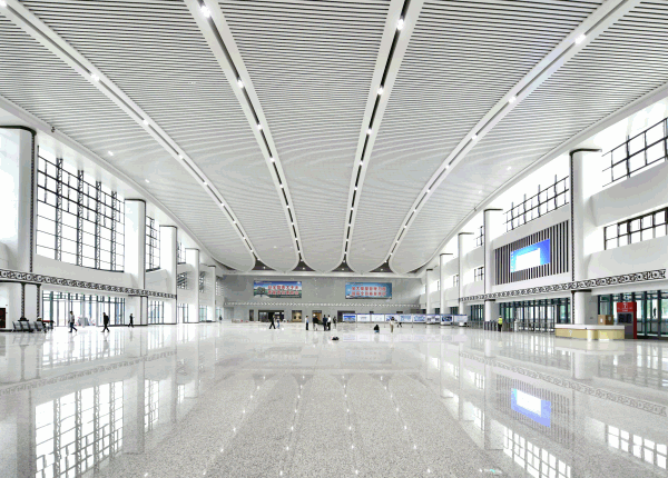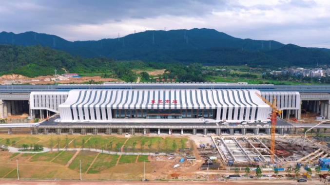 东莞南站位于东莞市塘厦镇林村社区东方红小组,是赣深高铁东莞境内的唯一站点,也是赣深高铁全线第二大站,站房面积28400平方米。站房以“岭南粤秀,海纳百川”为创意,以现代设计手法进行表达,兼具地方性和时代性。