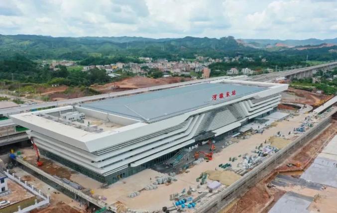 和平北站是赣深高铁南下入粤第一站,位于广东省河源市和平县阳明镇均联村,站房建筑面积9965平方米,以“入粤古郡,客韵新生”为设计理念。龙川西站