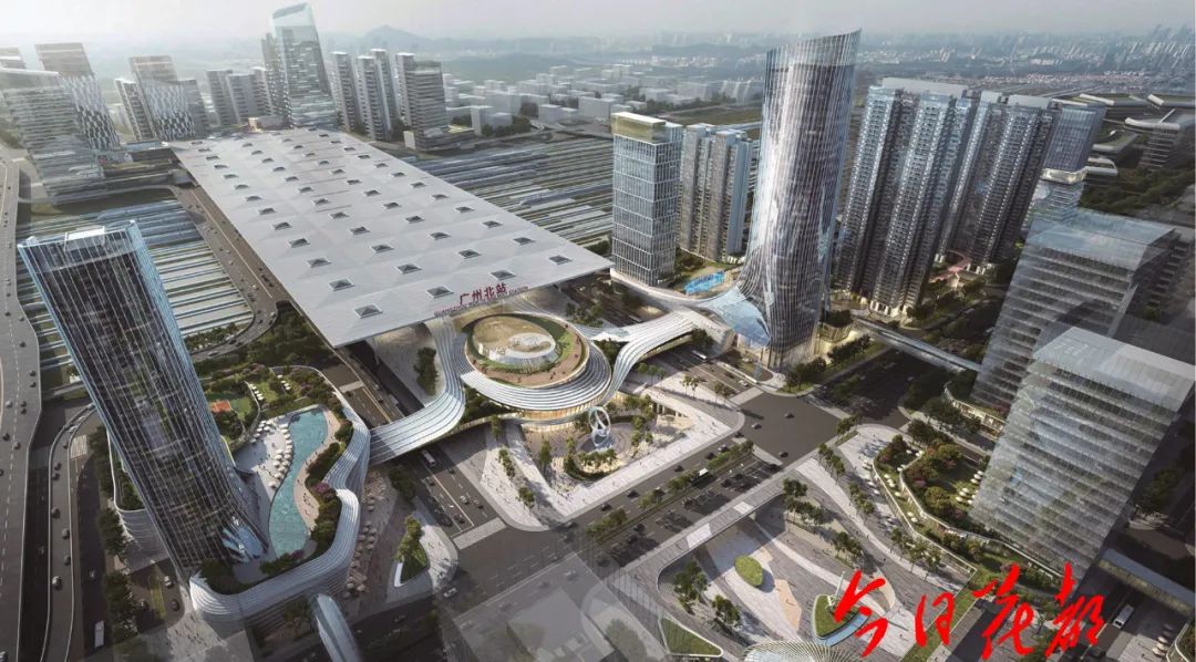 ▲广州北站及其东、西广场效果图●全面融入广州国际消费中心城市建设,重点打造主城区CBD、广州北站-白云国际机场、融创文旅城、狮岭时尚消费四大国际性商圈。